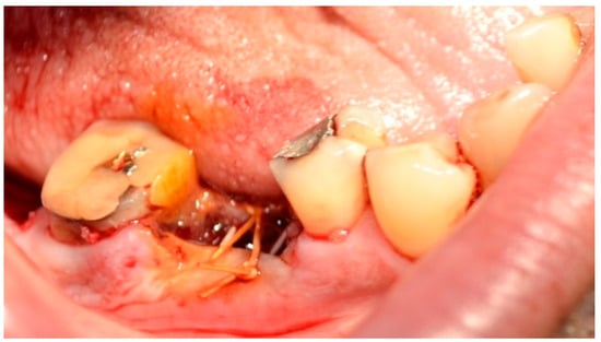 - Cardona-Tortajada, F.; Sainz-Gomez, E.; Figuerido-Garmendia, J.; de Robles-Adsuar, A.L.; Morte-Casabo, A.; Giner-Munoz, F.; Artazcoz-Oses, J.; Vidan-Lizari, J. Dental extractions in patients on antiplatelet therapy. A study conducted by the Oral Health Department of the Navarre Health Service. Med. Oral Patol. Oral Cir. Bucal 2009, 14, e588–e592. [Google Scholar] [CrossRef] [PubMed]