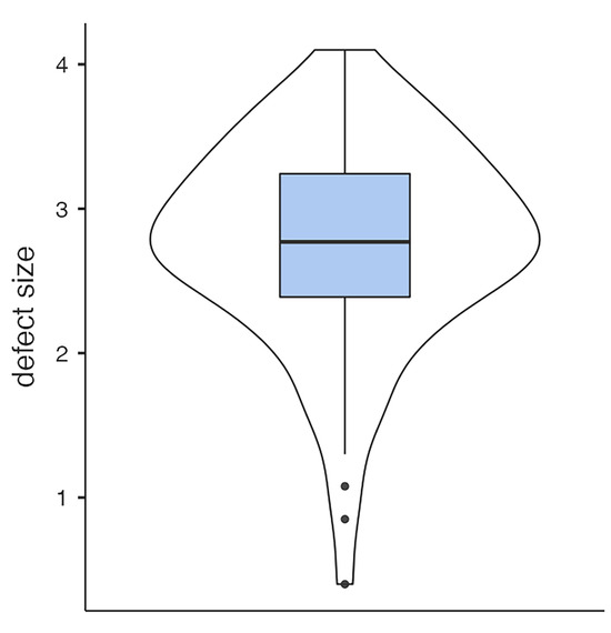 | Defect size | 1.3175 | −0.092 | 2.727 | 0.7191 | 1.832 | 0.067 | 3.73 |