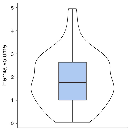 | Hernia volume | 0.6342 | −5.04 × 10−4 | 1.2689 | 0.3238 | 1.958 | 0.05 | 1.8855 |