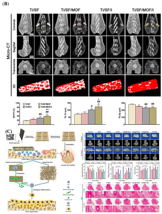 - He, Y.; Tian, M.; Li, X.; Hou, J.; Chen, S.; Yang, G.; Liu, X.; Zhou, S. A Hierarchical-Structured Mineralized Nanofiber Scaffold with Osteoimmunomodulatory and Osteoinductive Functions for Enhanced Alveolar Bone Regeneration. Adv. Healthc. Mater. 2022, 11, e2102236. [Google Scholar] [CrossRef]