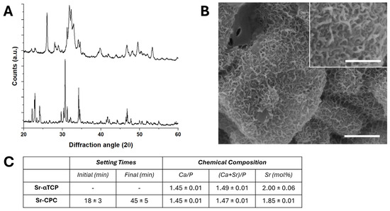- Sprio, S.; Dapporto, M.; Montesi, M.; Panseri, S.; Lattanzi, W.; Pola, E.; Logroscino, G.; Tampieri, A. Novel Osteointegrative Sr-Substituted Apatitic Cements Enriched with Alginate. Materials 2016, 9, 763. [Google Scholar] [CrossRef]