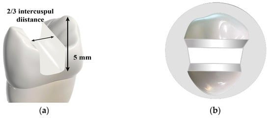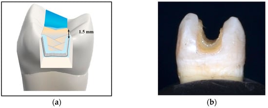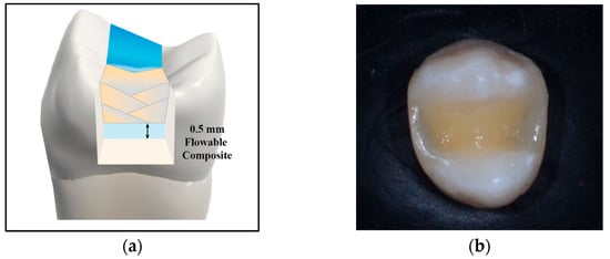 - Akman, S.; Akman, M.; Eskitascioglu, G.; Belli, S. Influence of several fibre-reinforced composite restoration techniques on cusp movement and fracture strength of molar teeth. Int. Endod. J. 2011, 44, 407–415. [Google Scholar] [CrossRef] [PubMed]