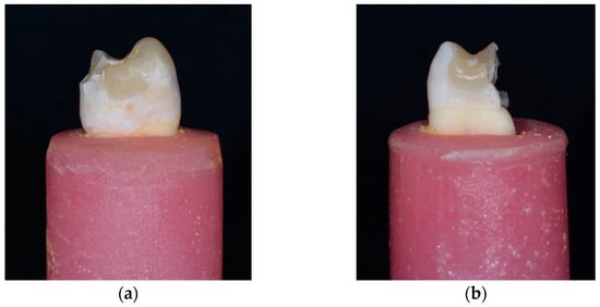 - Mincik, J.; Urban, D.; Timkova, S.; Urban, R. Fracture resistance of endodontically treated maxillary premolars restored by various direct filling materials: An in vitro study. Int. J. Biomater. 2016, 2016, 9138945. [Google Scholar] [CrossRef] [PubMed]