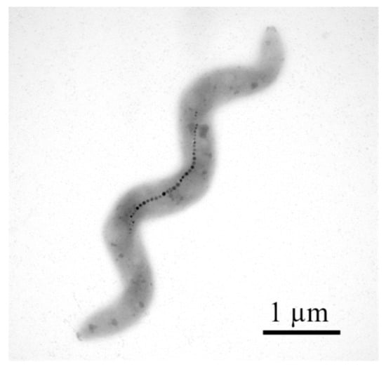 MTB constitute a heterogenous group of prokaryotic organisms; they are Gram-negative microorganisms that are distinct from morphological, phylogenetic, and physiological points of view [6,7,8]. Morphologically, MTB have varied cell shapes (rod, coccoid, ovoid, helical, spiral, or vibrio) and may even show multicellular forms. Regardless of the form, the mobility of MTB is given by the presence of flagella, and the structure of the cell wall is characteristic to Gram-negative bacteria. The movement of the flagella causes movement in the direction imposed by the Earth’s geomagnetic fields as well as by externally applied magnetic forces [7,8,9].