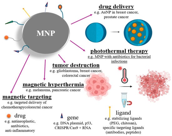 - Ghosal, K.; Chatterjee, S.; Thomas, S.; Roy, P. A Detailed Review on Synthesis, Functionalization, Application, Challenges, and Current Status of Magnetic Nanoparticles in the Field of Drug Delivery and Gene Delivery System. AAPS PharmSciTech 2022, 24, 25. [Google Scholar] [CrossRef] [PubMed]