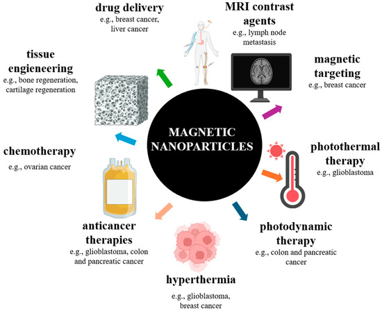 - Mittal, A.; Roy, I.; Gandhi, S. Magnetic Nanoparticles: An Overview for Biomedical Applications. Magnetochemistry 2022, 8, 107. [Google Scholar] [CrossRef]