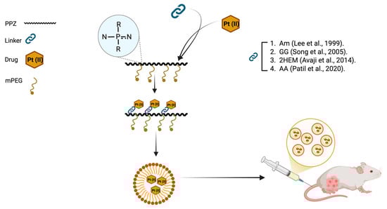 A similar strategy is the design of PPZ conjugates that release the drug in response to pH. Hackl et al. attached ruthenium half-sandwich compounds to branched PPZ by covalent bonds. The amine–ruthenium bonds were hydrolyzed at lower pH values, allowing pH-triggered release of the organometallic compound [62].