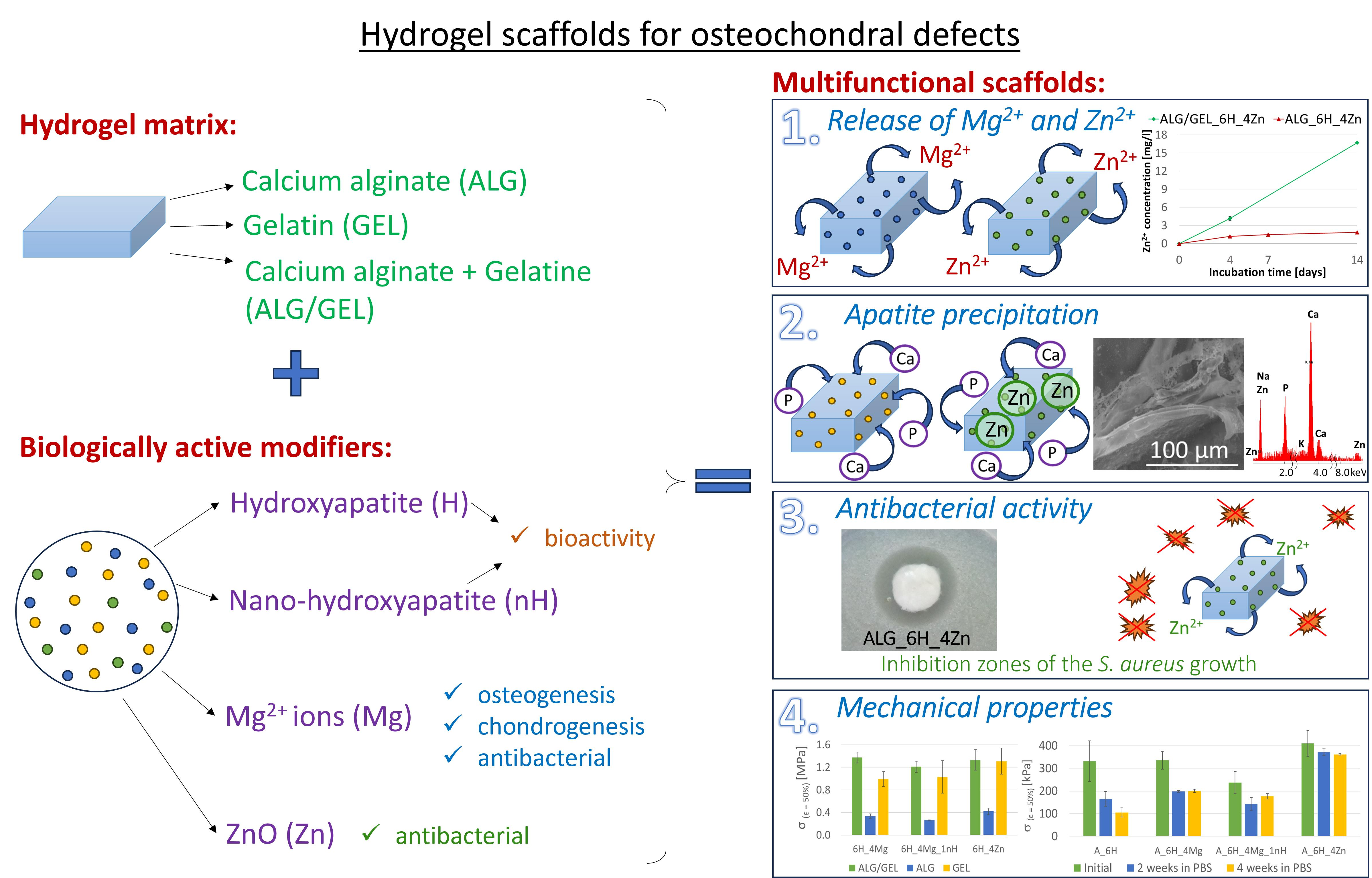 Effect of Zinc and Magnesium Compounds and Nano-Hydroxyapatite on the Physicochemical Properties and Biological Activity of Alginate and Gelatin Scaffolds for Osteochondral Defects