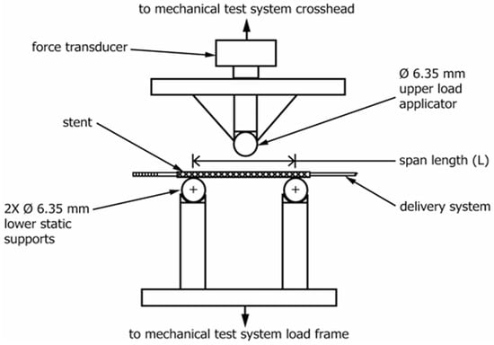 - Flexibility refers to the longitudinal bending ability. Bending flexibility of a deployed stent may be one measure of its ability to flex with a vessel or to conform to the natural curvature of a vessel. The specimen is loaded onto a three-point bend fixture. The specimen is supported from below by two static supports separated by a known span and bent by a force applied at the top and midway between the lower supports, as shown in Figure 1. The bending flexibility of the stent is obtained from force-versus-deflection plots and/or midspan bending moment versus midspan curvature plots.