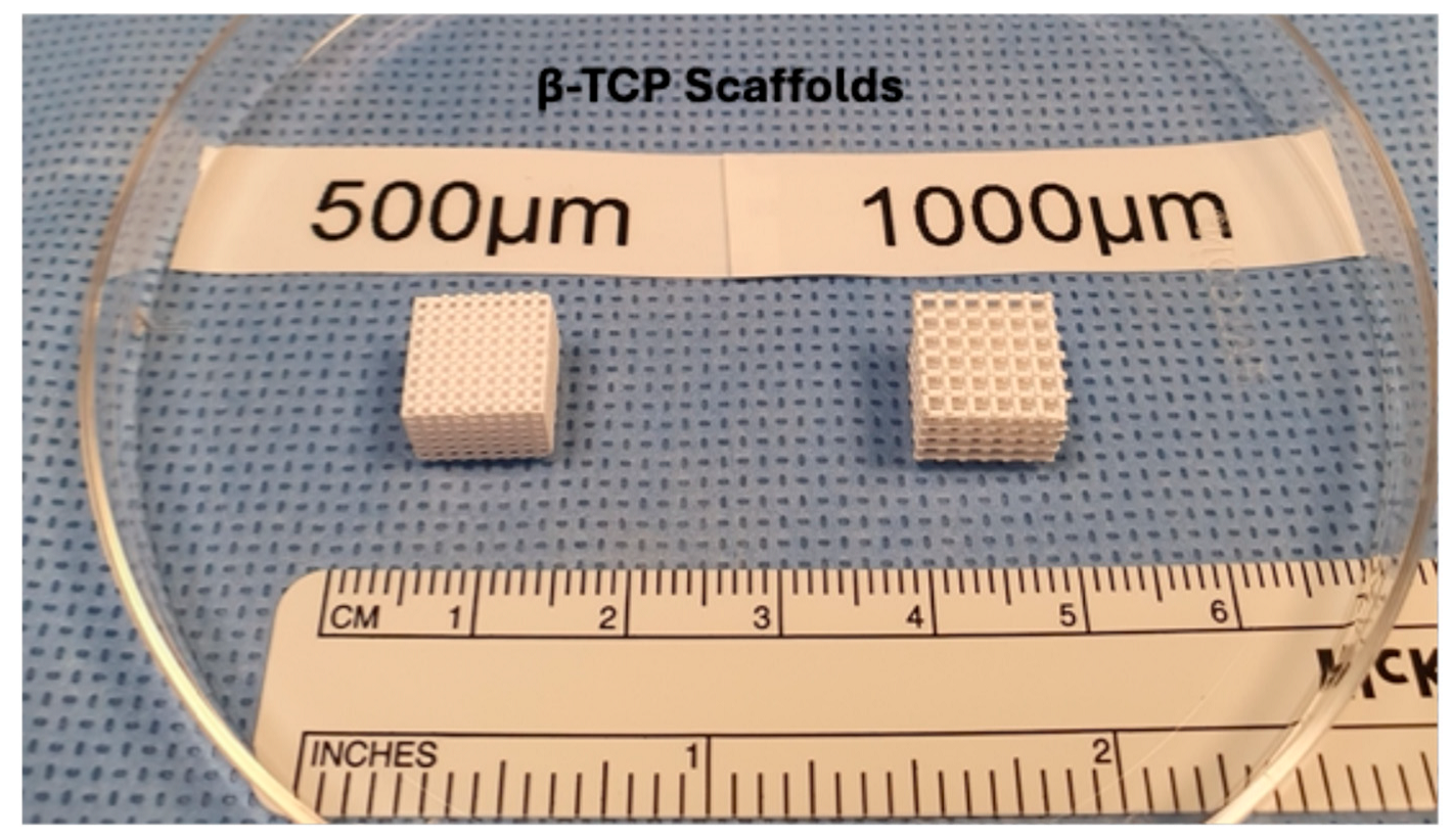 Sillmann, Y.M.; Baggio, A.M.P.; Eber, P.; Freedman, B.R.; Liu, C.; Jounaidi, Y.; Schramm, A.; Wilde, F.; Guastaldi, F.P.S. Advancing Scaffold Architecture for Bone Tissue Engineering: A Comparative Study of 3D-Printed β-TCP Constructs in Dynamic Culture with pBMSC. J. Funct. Biomater. 2025, 16, 327. https://doi.org/10.3390/jfb16090327