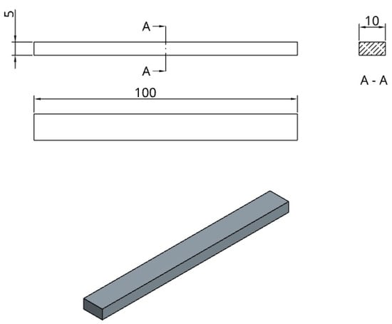 Figure 2). The bar is 100 mm long, 10 mm by 5 mm in cross-section, and was printed horizontally with its longest axis pointing in the X direction of the printer.