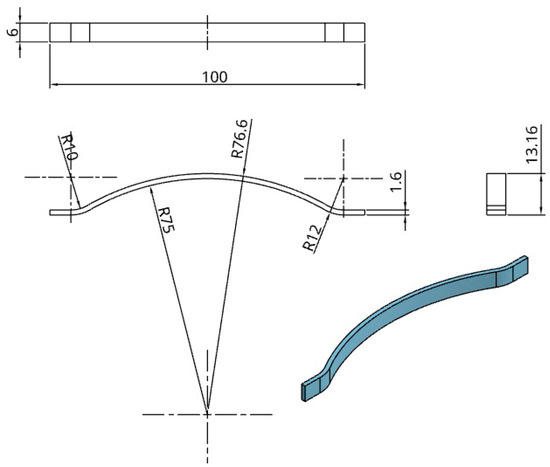 Figure 3. The item has varied curvatures, a maximum height of 13.16 mm, and dimensions of 100 mm in length and 6 mm in breadth.