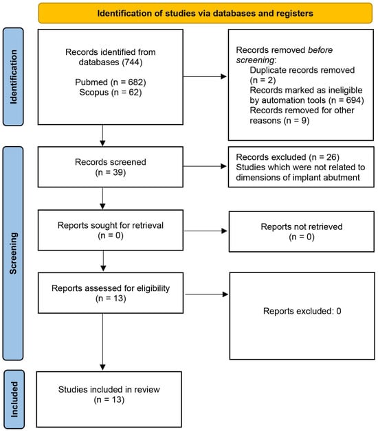 - Chmielewski, M.; Dąbrowski, W.; Ordyniec-Kwaśnica, I. The Fracture Resistance Comparison between Titanium and Zirconia Implant Abutments with and without Ageing: Systematic Review and Meta-Analysis. Dent. J. 2024, 12, 274. [Google Scholar] [CrossRef]