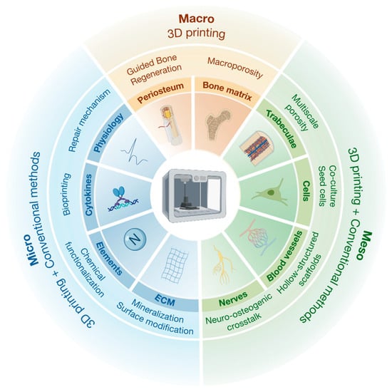Zhu, Y.; Gao, H.; Qiao, Q.; Yuan, Y.; Fang, D.; Bai, Y.; Jiang, Q. Integrating Additive and Traditional Manufacturing for Multiscale Bone Tissue Engineering Scaffolds. J. Funct. Biomater. 2025, 16, 349. https://doi.org/10.3390/jfb16090349