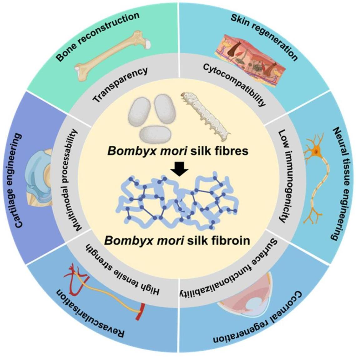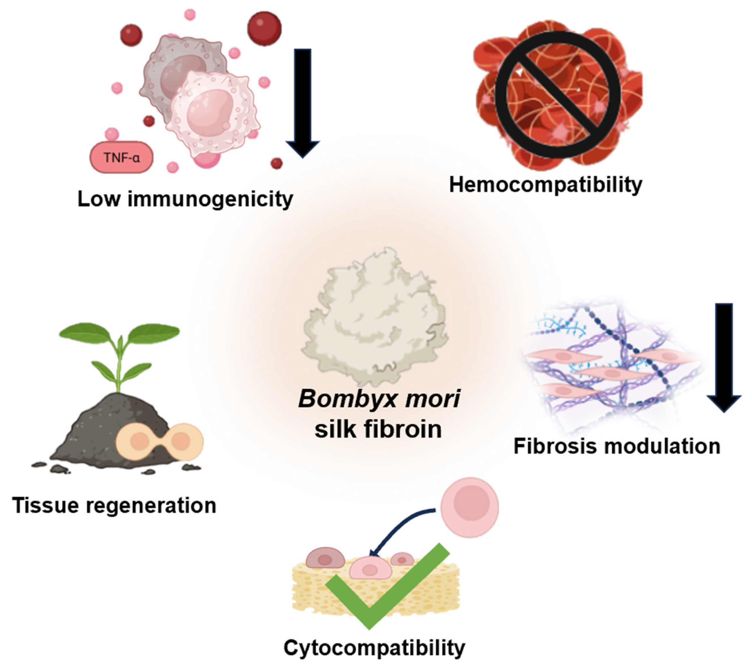 2. Key Properties That Make Bombyx mori Silk Fibroin Promising for Regenerative Medicine