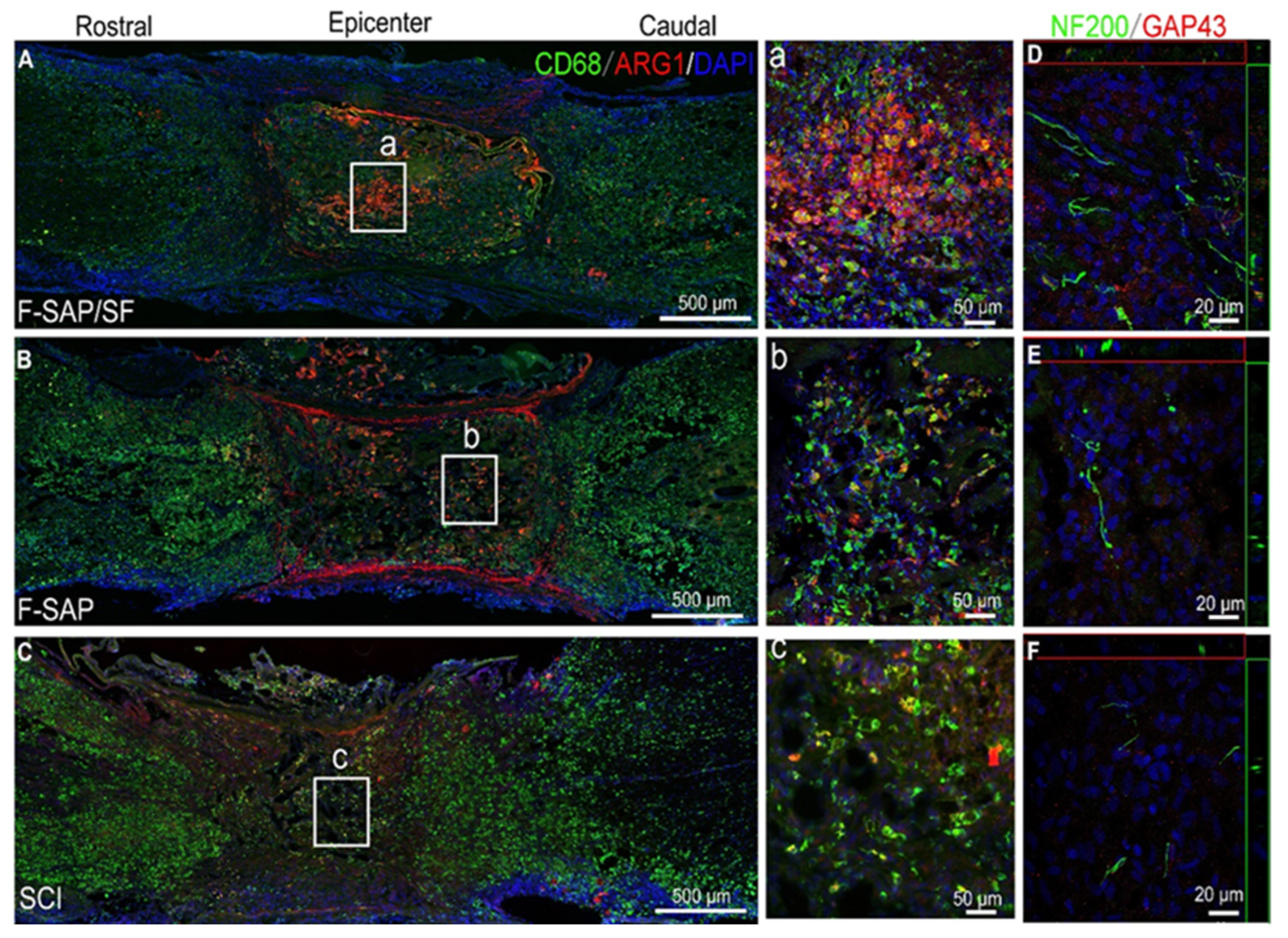 | Hydrogel | - | The BMSF-only hydrogel recruited a higher proportion of regenerative macrophages, which correlated with reduced scar length [180]. |