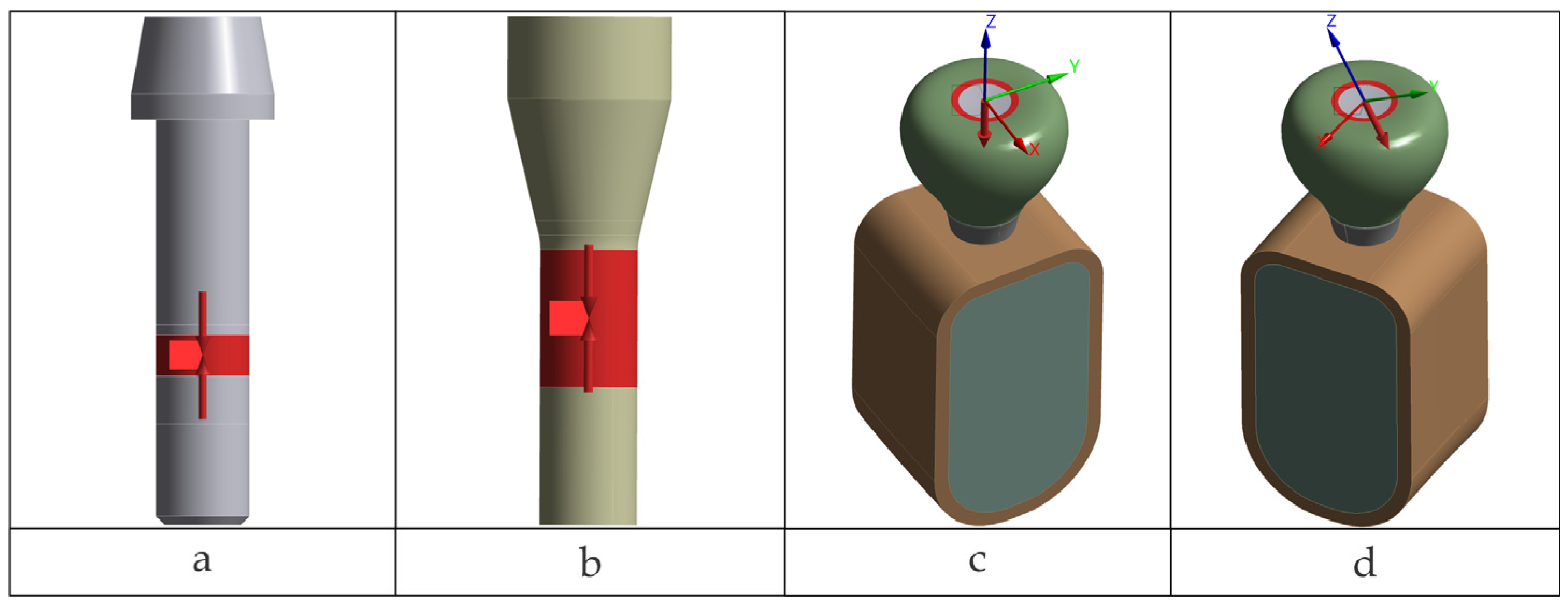 Dental crowns were created using CAD tools (SpaceClaim) as axially symmetric solid volumes of the desired size for the corresponding implants. Screw and implant threads (within screw engagement regions) were not modeled, as thread-level detail is beyond the scope of this work. We adopted a smooth-body representation for screws and evaluated their response at the body level, forgoing the resolution of local thread geometry. The composite volume used to seal the crown’s access channel was generated in the remaining space.