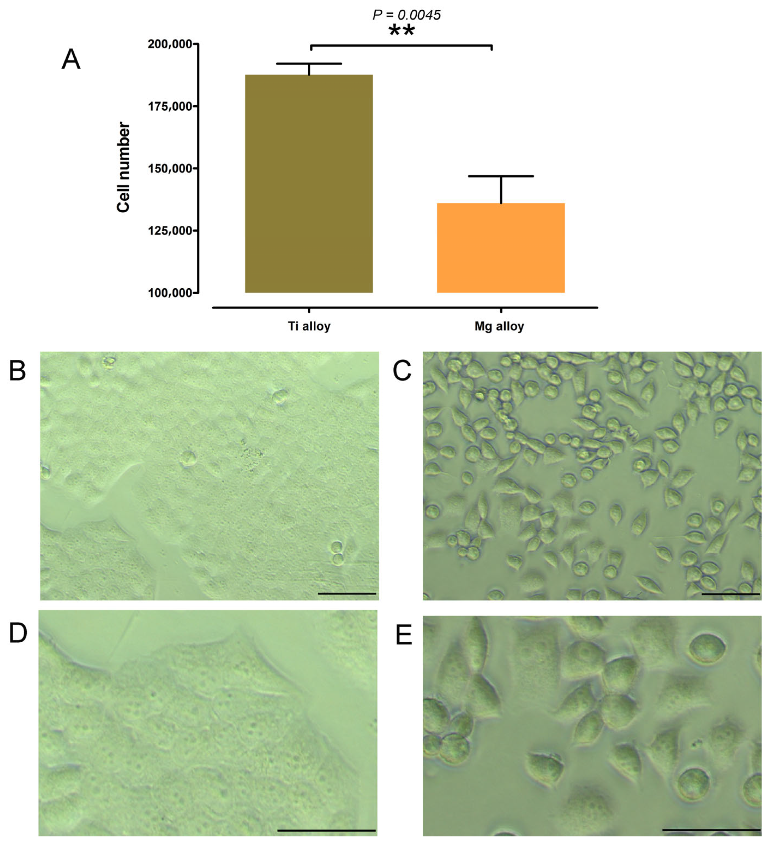 - Ge, S.; Wang, Y.; Tian, J.; Lei, D.; Yu, Q.; Wang, G. An in vitro study on the biocompatibility of WE magnesium alloys. J. Biomed. Mater. Res. Part B Appl. Biomater. 2016, 104, 482–487. [Google Scholar] [CrossRef]