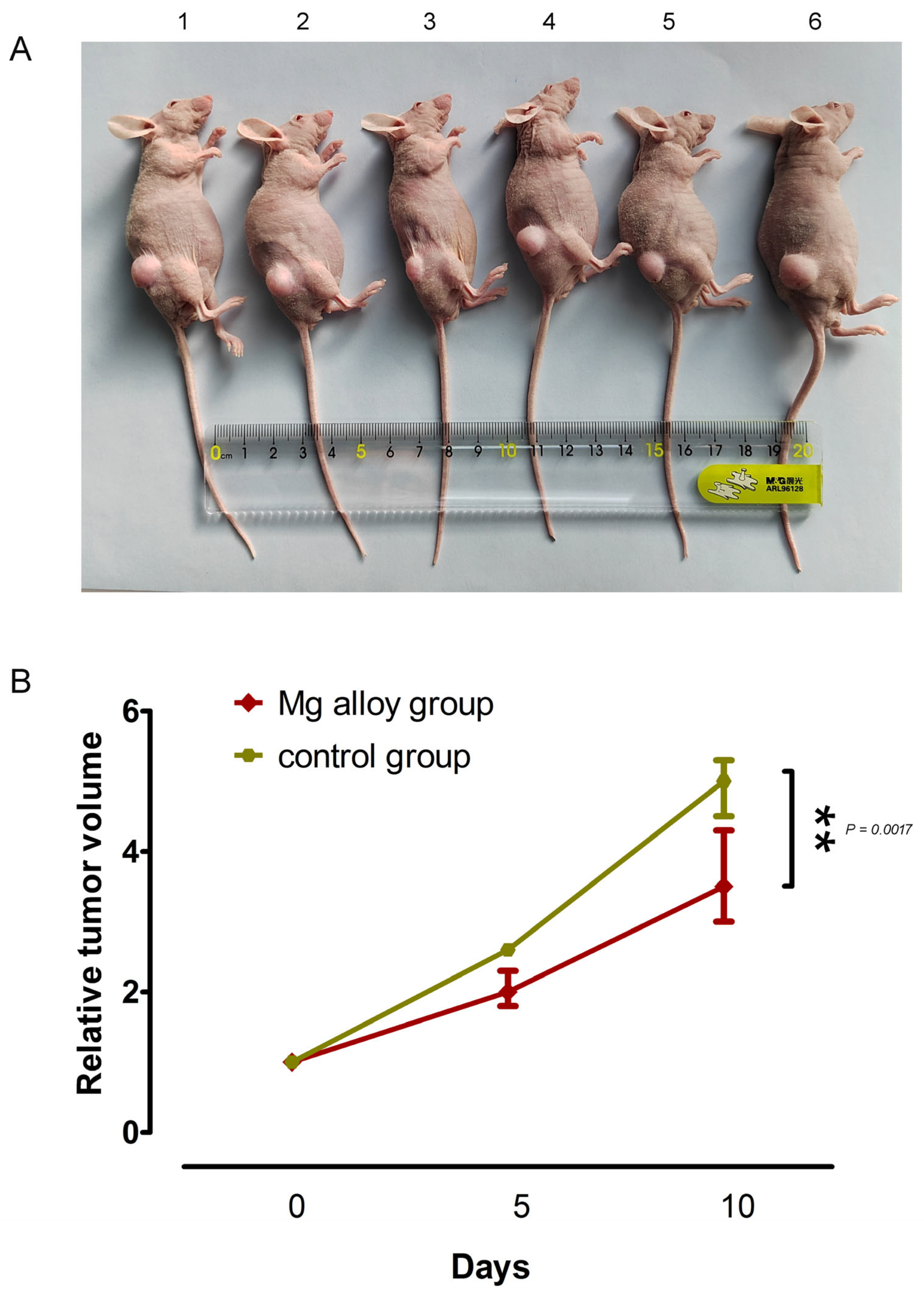 3.7. Effect of Mg Alloy Implantation on Subcutaneous Gastric Tumors
