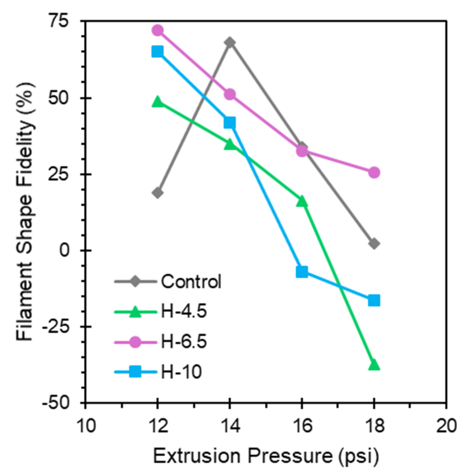 3.2. Printability of Unreacted Hybrid Hydrogels