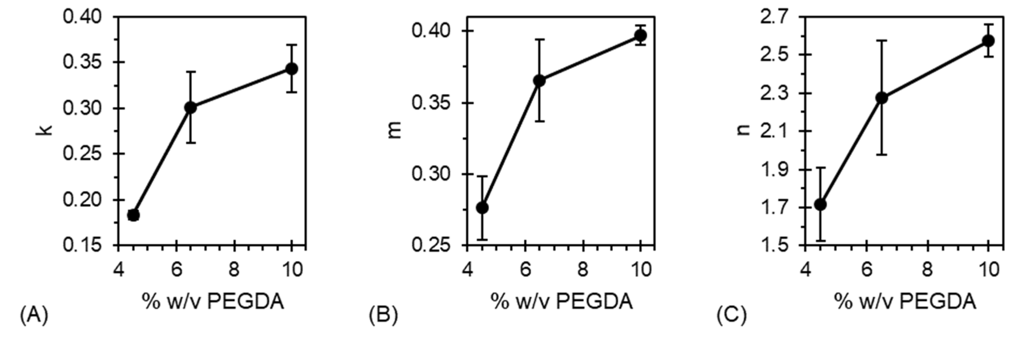 - Shapiro, J.M.; Oyen, M.L. Viscoelastic analysis of single-component and composite PEG and alginate hydrogels. Acta Mech. Sin. 2014, 30, 7–14. [Google Scholar] [CrossRef]