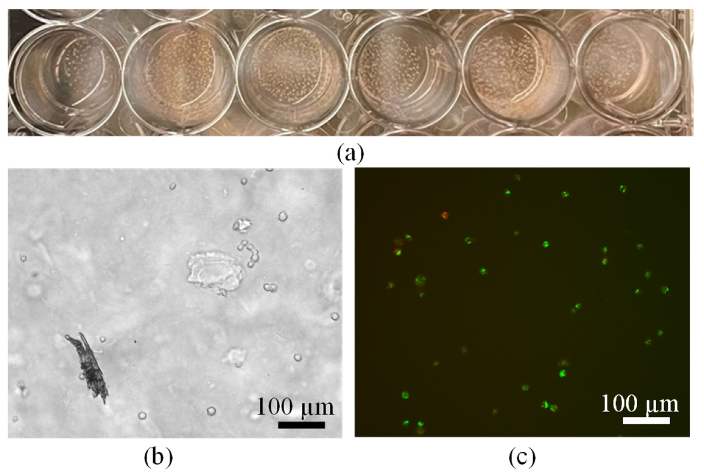 - Xu, H.; Casillas, J.; Krishnamoorthy, S.; Xu, C. Effects of Irgacure 2959 and lithium phenyl-2,4,6-trimethylbenzoylphosphinate on cell viability, physical properties, and microstructure in 3D bioprinting of vascular-like constructs. Biomed. Mater. 2020, 15, 055021. [Google Scholar] [CrossRef] [PubMed]