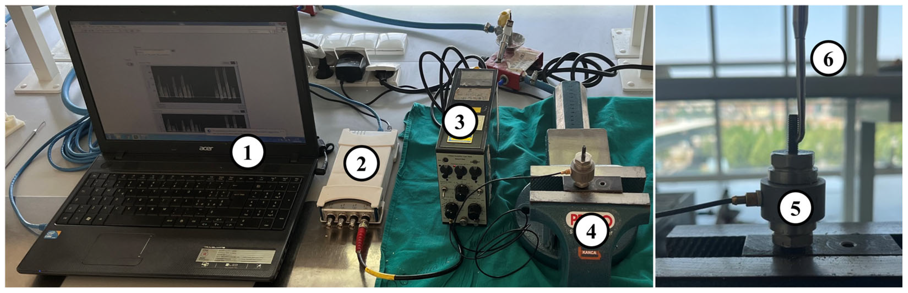- Lugas, A.T.; Terzini, M.; Zanetti, E.M.; Schierano, G.; Manzella, C.; Baldi, D.; Bignardi, C.; Audenino, A.L. In Vitro Impact Testing to Simulate Implant-Supported Prosthesis Retrievability in Clinical Practice: Influence of Cement and Abutment Geometry. Materials 2020, 13, 1749. [Google Scholar] [CrossRef]