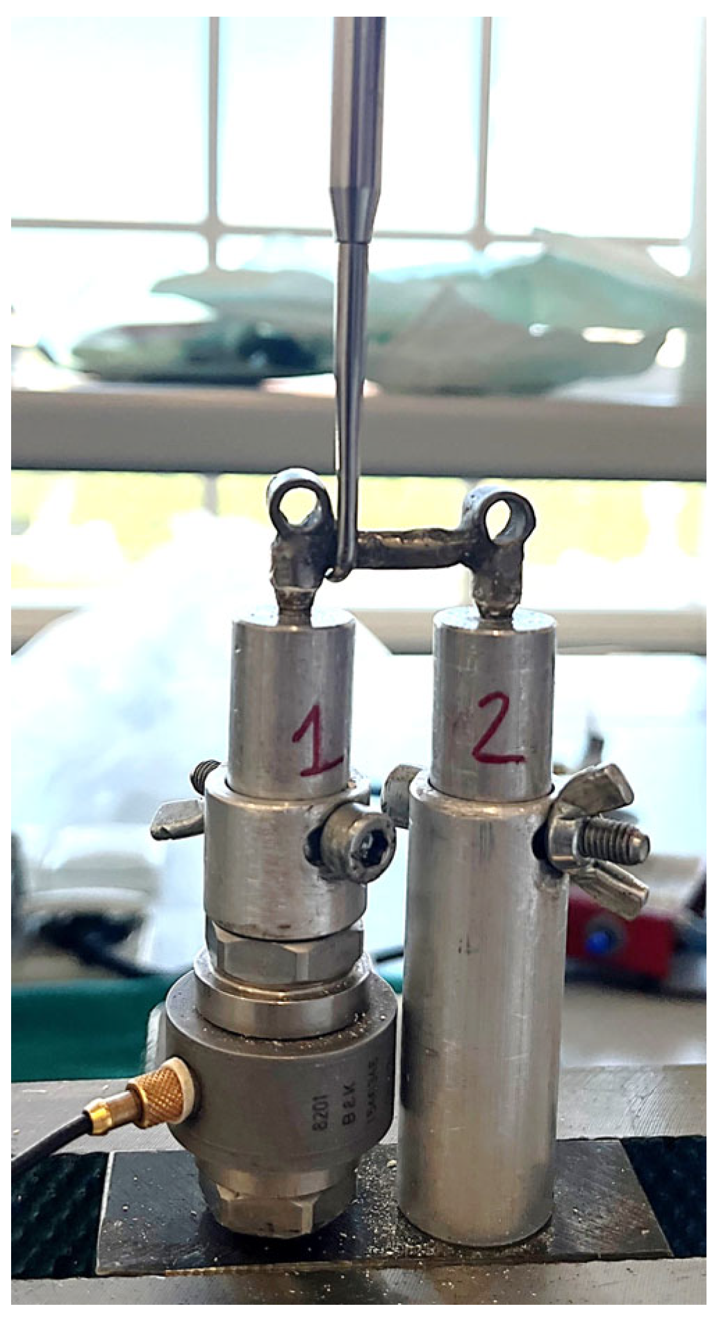 - Schierano, G.; Manzella, C.; Menicucci, G.; Parrotta, A.; Zanetti, E.M.; Audenino, A.L. In Vitro Standardization of Two Different Removal Devices in Cemented Implant Prosthesis. Clin. Oral Implant. Res. 2016, 27, 1026–1030. [Google Scholar] [CrossRef]