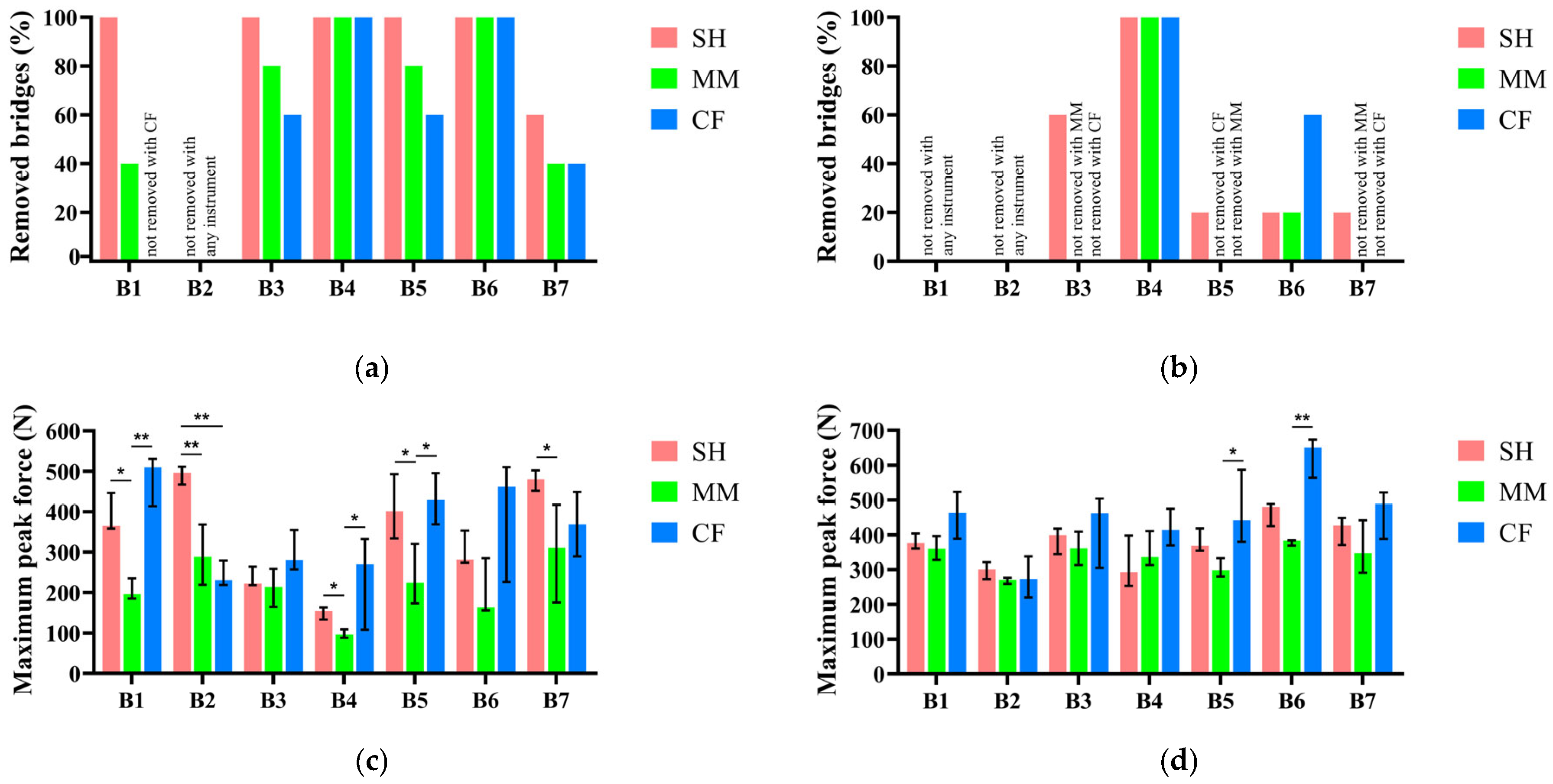 Efficiency and Risk Assessment of Dental Bridge Removal Tools on Implant Abutments