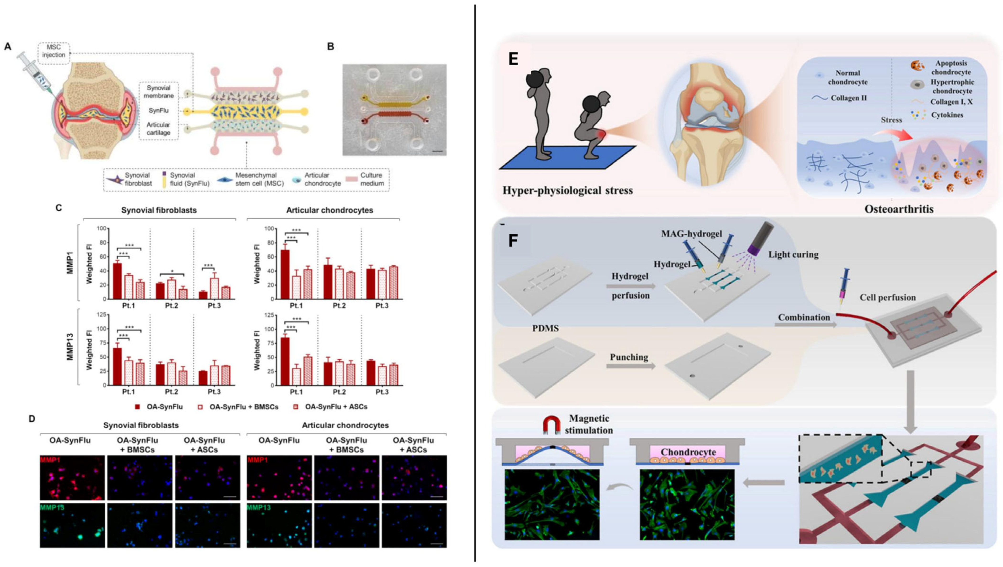 - Liu, H.; Wu, X.; Liu, R.; Wang, W.; Zhang, D.; Jiang, Q. Cartilage-on-a-chip with magneto-mechanical transformation for osteoarthritis recruitment. Bioact. Mater. 2024, 33, 61–68. [Google Scholar] [CrossRef] [PubMed]