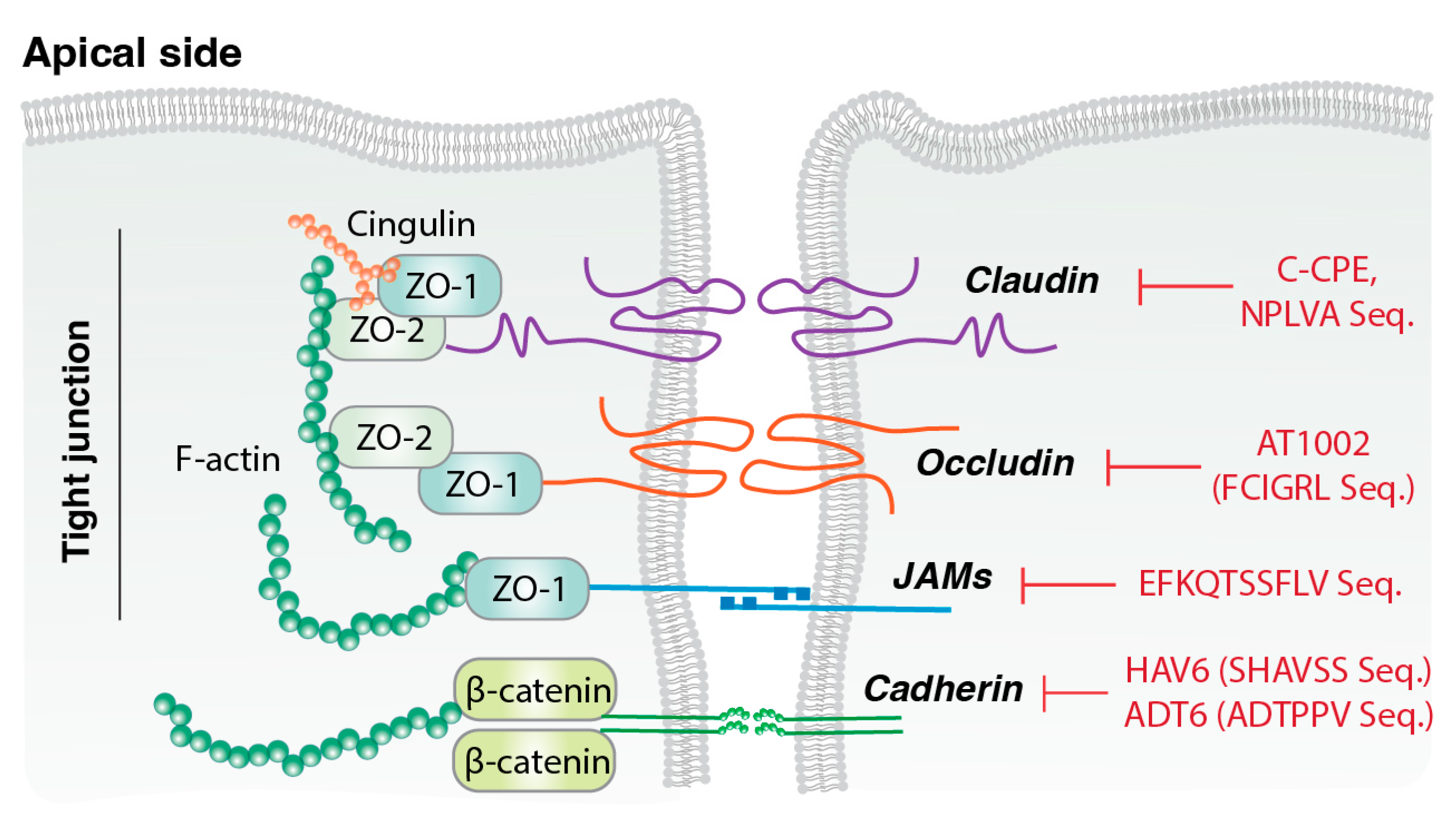 - Brunner, J.; Ragupathy, S.; Borchard, G. Target specific tight junction modulators. Adv. Drug Deliv. Rev. 2021, 171, 266–288. [Google Scholar] [CrossRef]