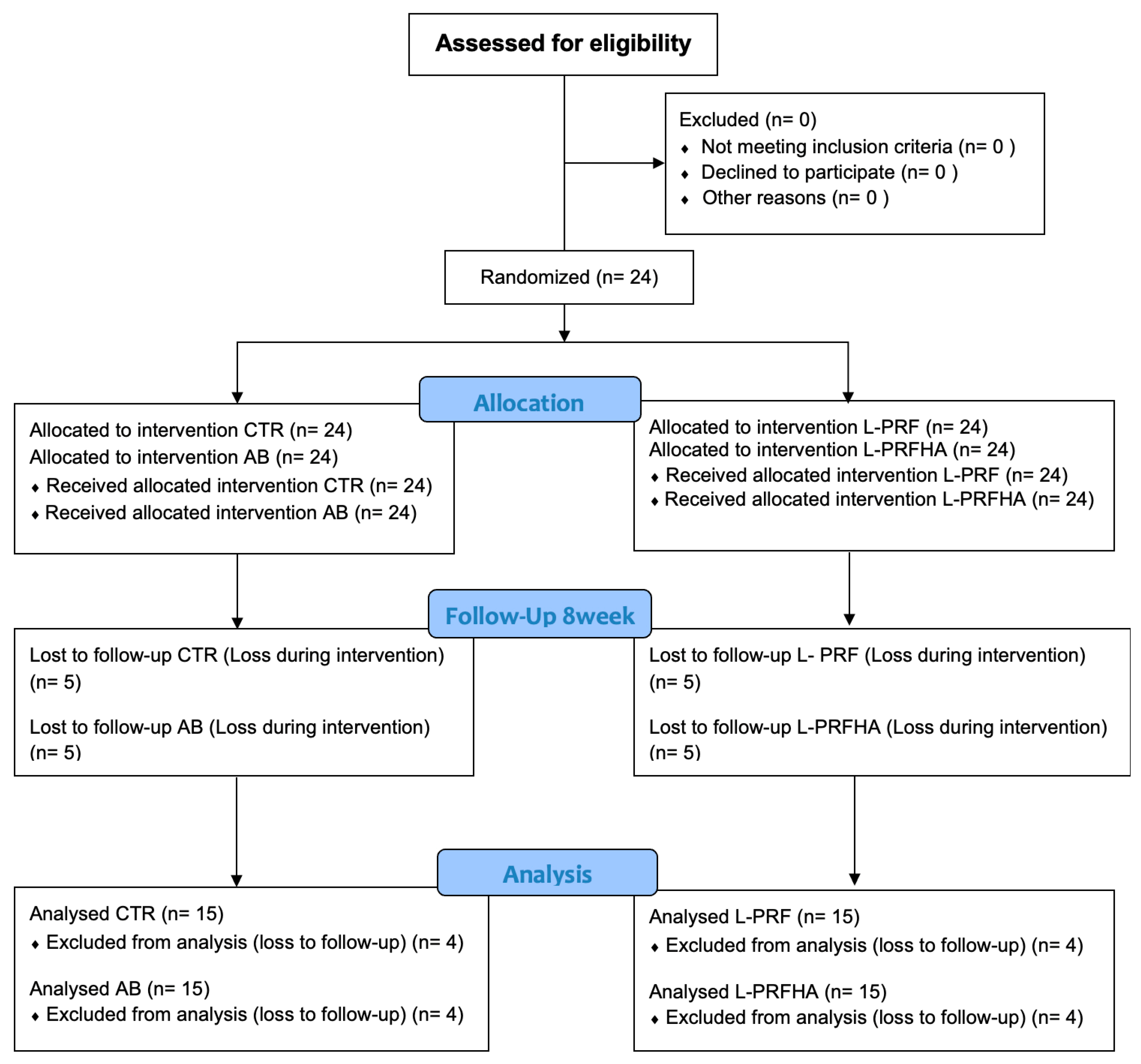 - Giammarinaro, E.; Baldini, N.; Covani, U.; Menini, M.; Pesce, P.; Marconcini, S. Does platelet-rich fibrin enhance the outcomes of peri-implant soft tissues? A systematic review. BMC Oral Health 2025, 25, 615. [Google Scholar] [CrossRef]