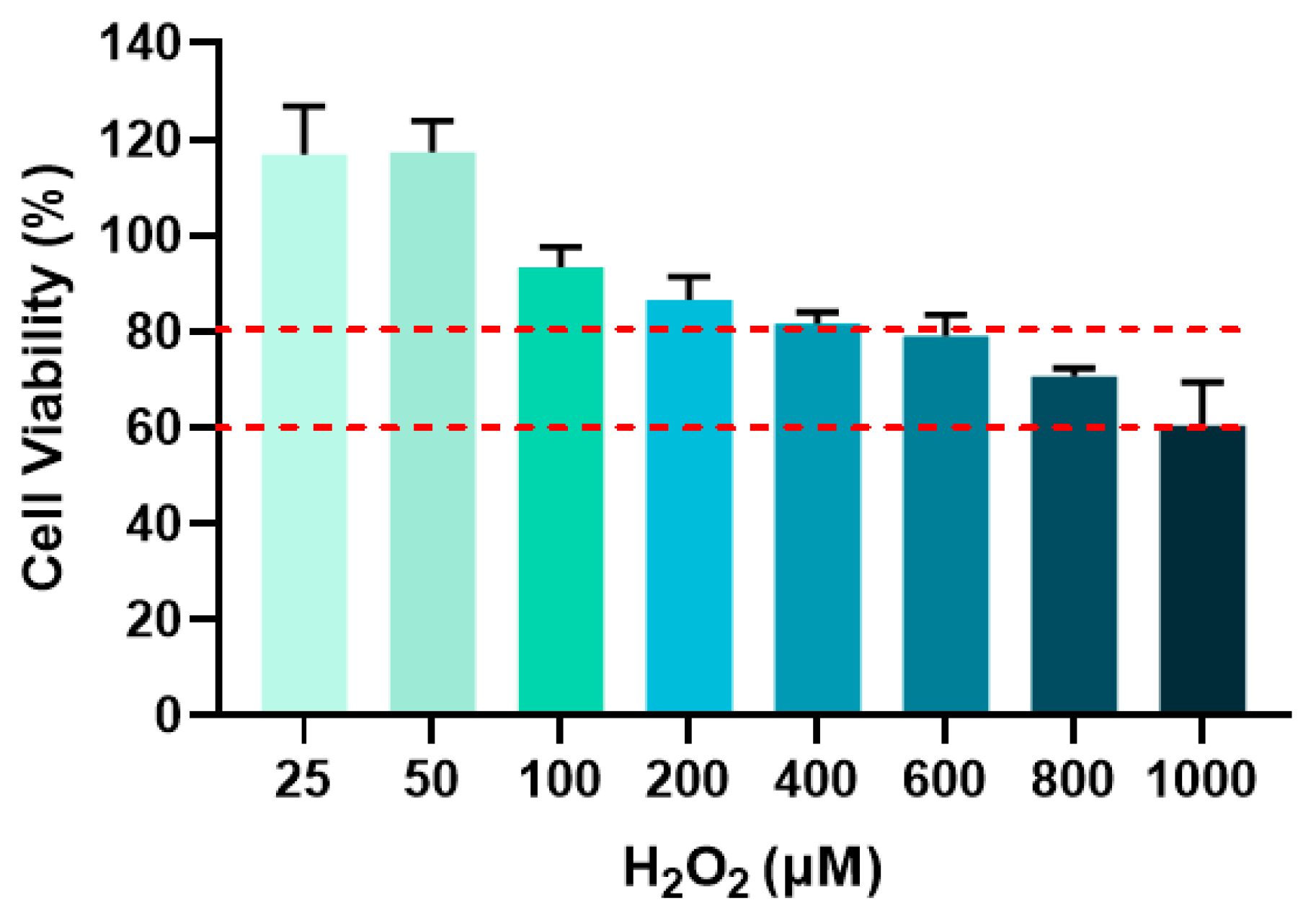 3.4. Screening of Optimal H2O2 Concentration for Modeling Cellular Senescence