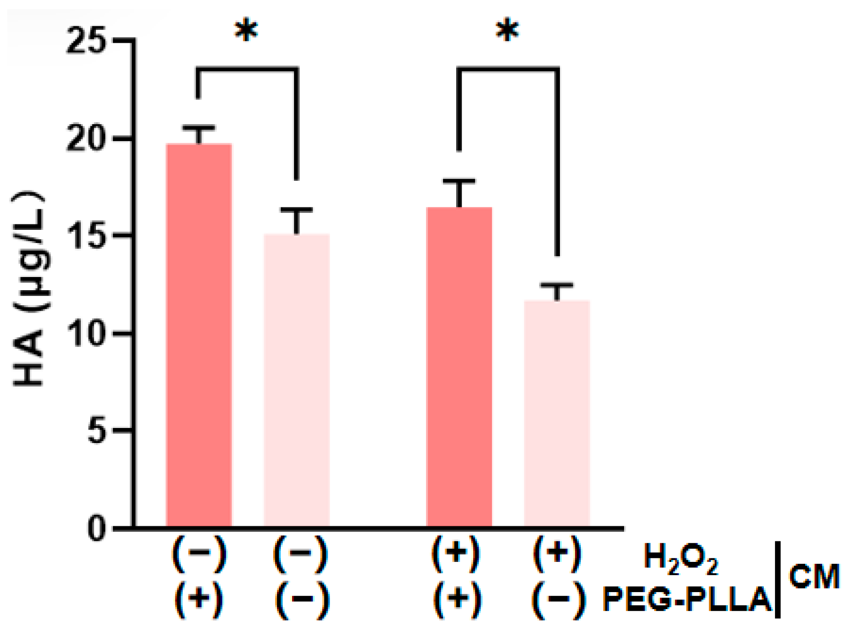 3.6. The Effect of PEG-PLLA MSs on Hyaluronic Acid (HA) Content