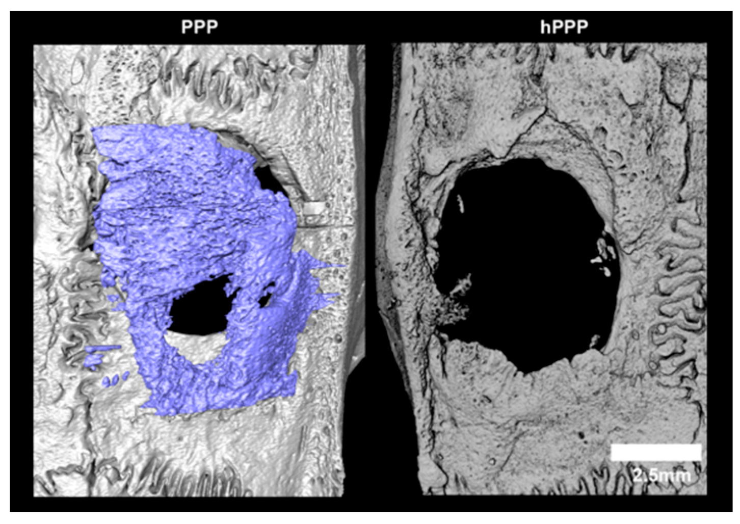 3.3. Heat-Denatured PPP-Coated Collagen Membranes (hPPP)
