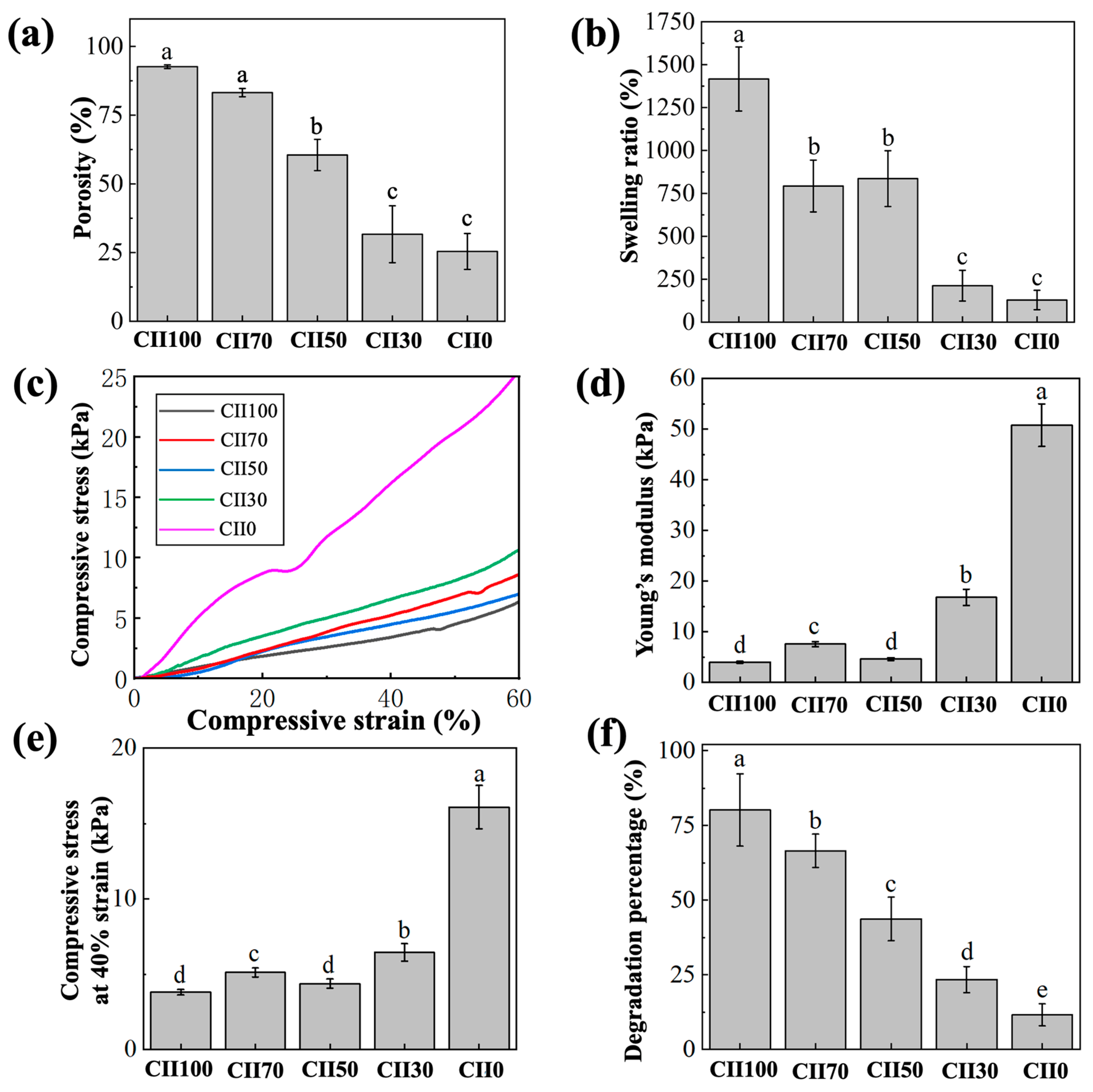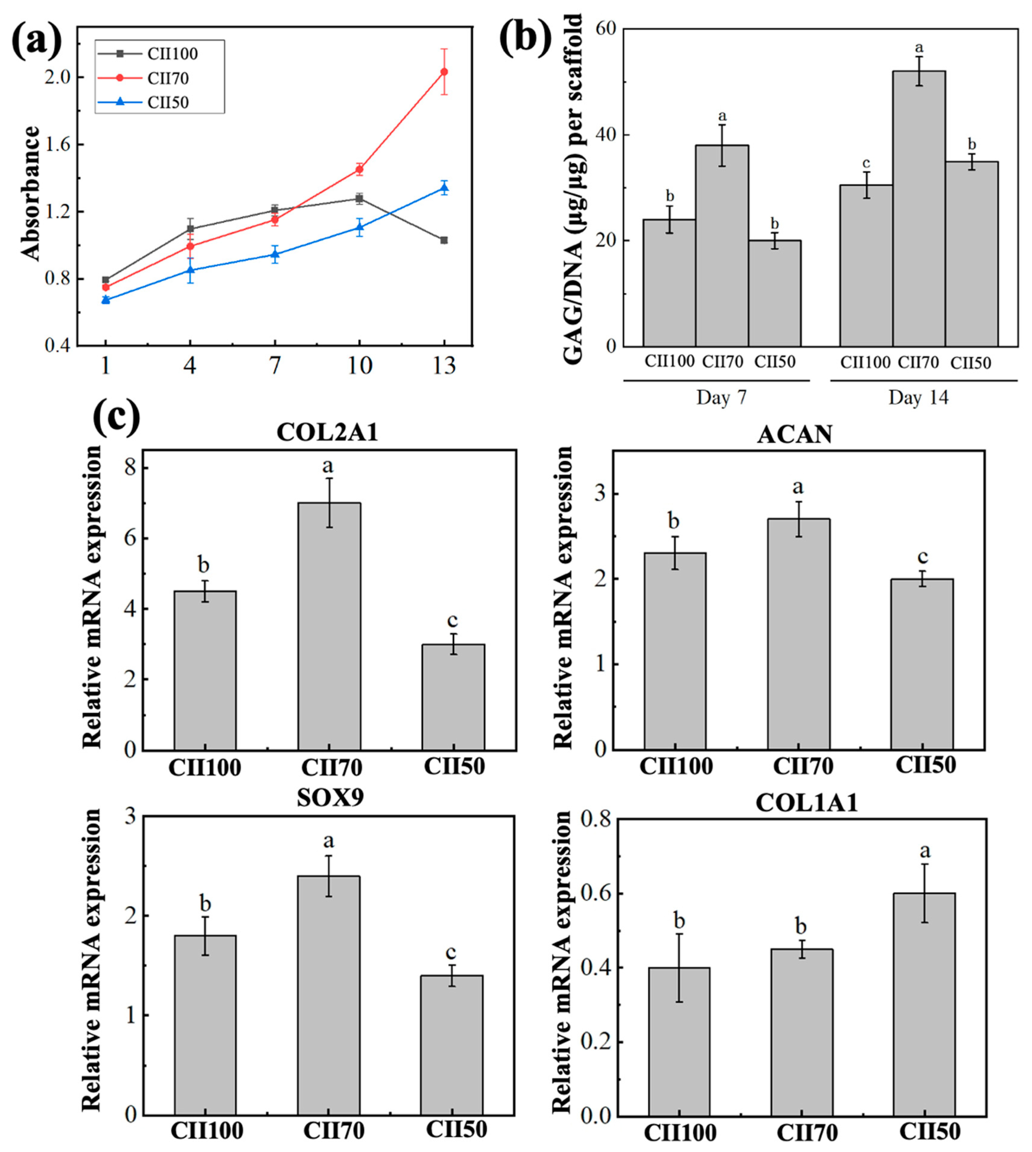 3.2. Fabrication of CII/SF/CS Composite Scaffolds