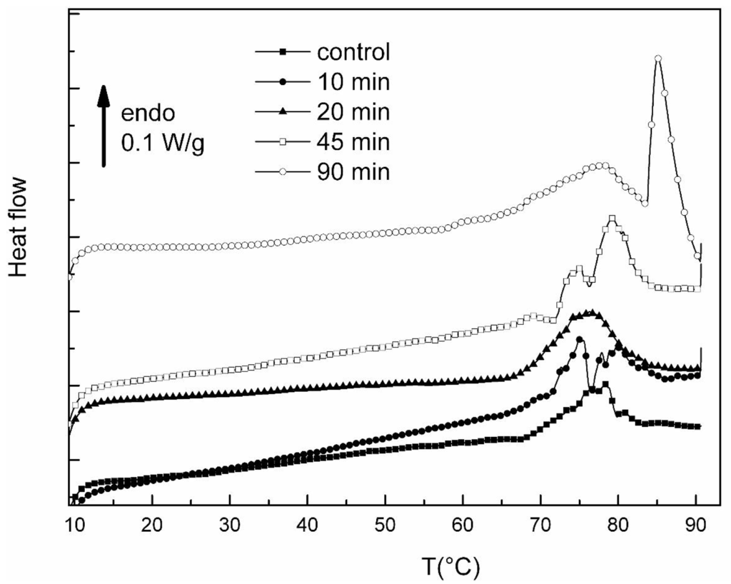 - Samouillan, V.; Dandurand-Lods, J.; Lamure, A.; Maurel, E.; Lacabanne, C.; Gerosa, G.; Venturini, A.; Casarotto, D.; Gherardini, L.; Spina, M. Thermal analysis characterization of aortic tissues for cardiac valve bioprostheses. J. Biomed. Mater. Res. 1999, 46, 531–538. [Google Scholar] [Green Version]