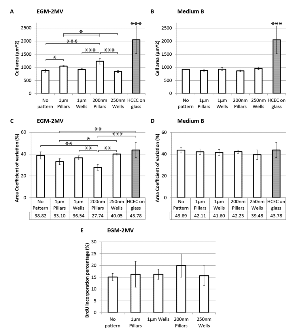 3.4. Scanning Electron Microscopy of HMVECS on Different Topographies