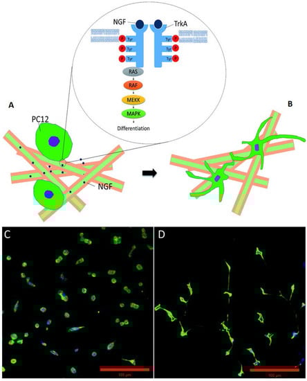 - Tian, L.; Prabhakaran, M.P.; Hu, J.; Chen, M.; Besenbacher, F.; Ramakrishna, S. Coaxial electrospun poly (lactic acid)/silk fibroin nanofibers incorporated with nerve growth factor support the differentiation of neuronal stem cells. RSC Adv. 2015, 5, 49838–49848. [Google Scholar] [CrossRef]