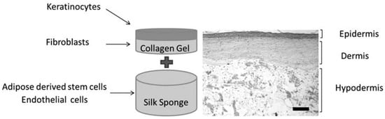 - Bellas, E.; Seiberg, M.; Garlick, J.; Kaplan, D.L. In vitro 3D full-thickness skin-equivalent tissue model using silk and collagen biomaterials. Macromol. Biosci. 2012, 12, 1627–1636. [Google Scholar] [CrossRef] [PubMed]