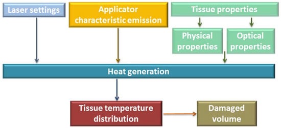 Heat generation in the tissue, hence the effect of LA, is influenced by a number of factors: laser light wavelength, laser settings (laser power, laser energy, and treatment time), physical properties of the tissue, and the emission characteristics of the optical applicator [6], see Figure 1.