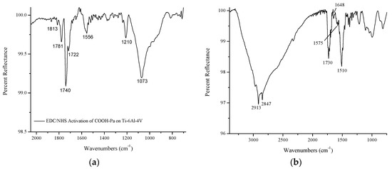 - Sam, S.; Touahir, L.; Salvador Andresa, J.; Allongue, P.; Chazalviel, J.N.; Gouget-Laemmel, A.C.; Henry de Villeneuve, C.; Moraillon, A.; Ozanam, F.; Gabouze, N.; et al. Semiquantitative study of the EDC/NHS activation of acid terminal groups at modified porous silicon surfaces. Langmuir 2010, 26, 809–814. [Google Scholar] [CrossRef] [PubMed]
