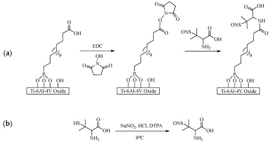 3.1. Characterization of S-Nitroso-Penicillamine-Modified Ti-6Al-4V