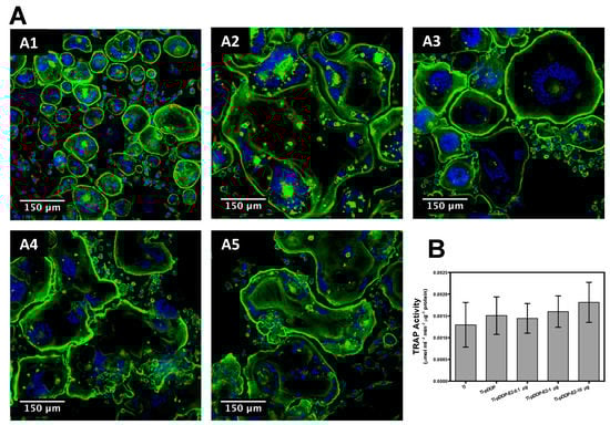 2.6. Osteoclast Actin Ring Formation and TRAP Activity