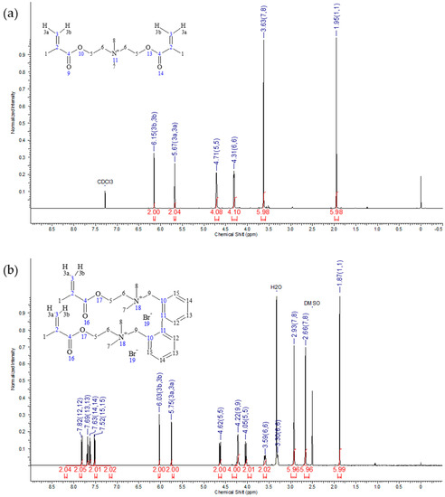Typical 1H NMR spectrum of (a) IDMA1 and (b) of IDMA2.