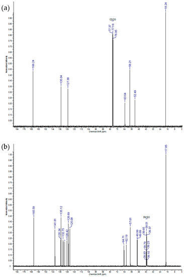 Typical 13C NMR spectrum of (a) IDMA1 and (b) of IDMA2.