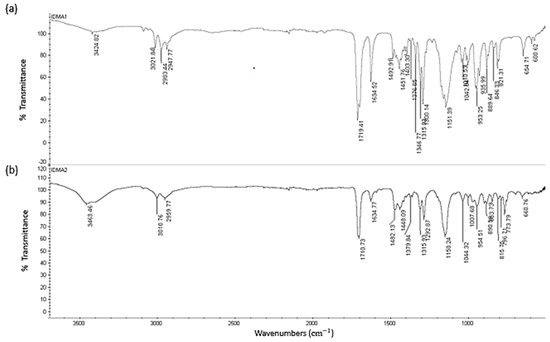 Typical FTIR spectrum of (a) IDMA1 and (b) of IDMA2.