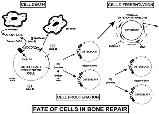 The process of mitosis is essential in the formation of new bone tissue. As a result, it is necessary to provide correct chemical stimuli in order to allow osteo-progenitor cells to enter the active phases of the cell cycle.