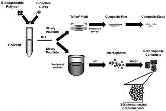 - Lu, H.H.; El-Amin, S.F.; Scott, K.D.; Laurencin, C.T. Three-dimensional, bioactive, biodegradable, polymer-bioactive glass composite scaffolds with improved mechanical properties support collagen synthesis and mineralization of human osteoblast-like cells in vitro. J. Biomed. Mater. Res. 2003, 64A, 465–474. [Google Scholar] [CrossRef] [PubMed]