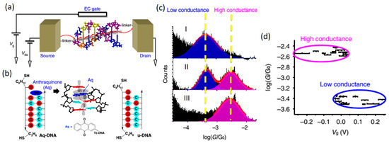- Xiang, L.; Palma, J.L.; Li, Y.; Mujica, V.; Ratner, M.A.; Tao, N. Gate-controlled conductance switching in DNA. Nat. Commun. 2017, 8, 14471. [Google Scholar] [CrossRef] [PubMed]